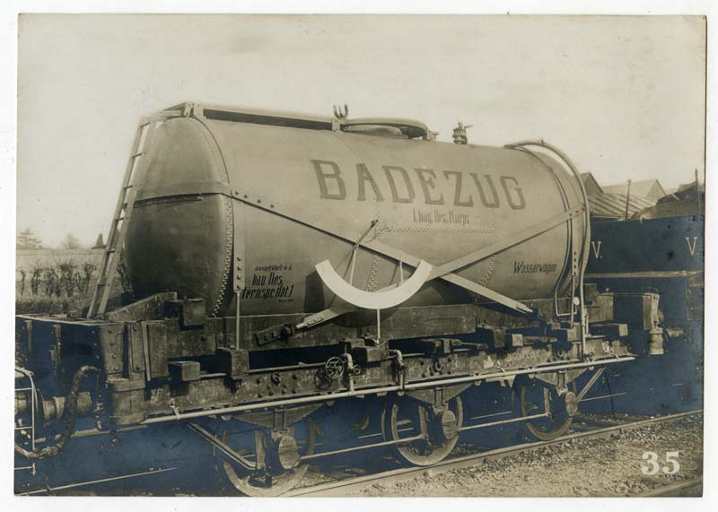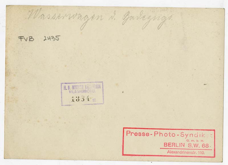 Wasserwagon d. Badezugs. Pecsét: M.N. Múzeum Könyvtára; Világháború; 1384. Pecsét: Presse-Foto-Syndikat G.m.b.H. BERLIN S.W. 68. Alexandrinenstr. 110.