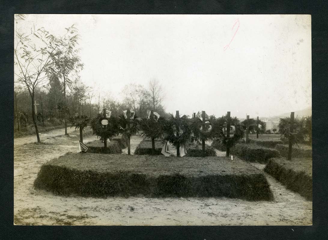 Katonai temető megkoszorúzott fejfákkal