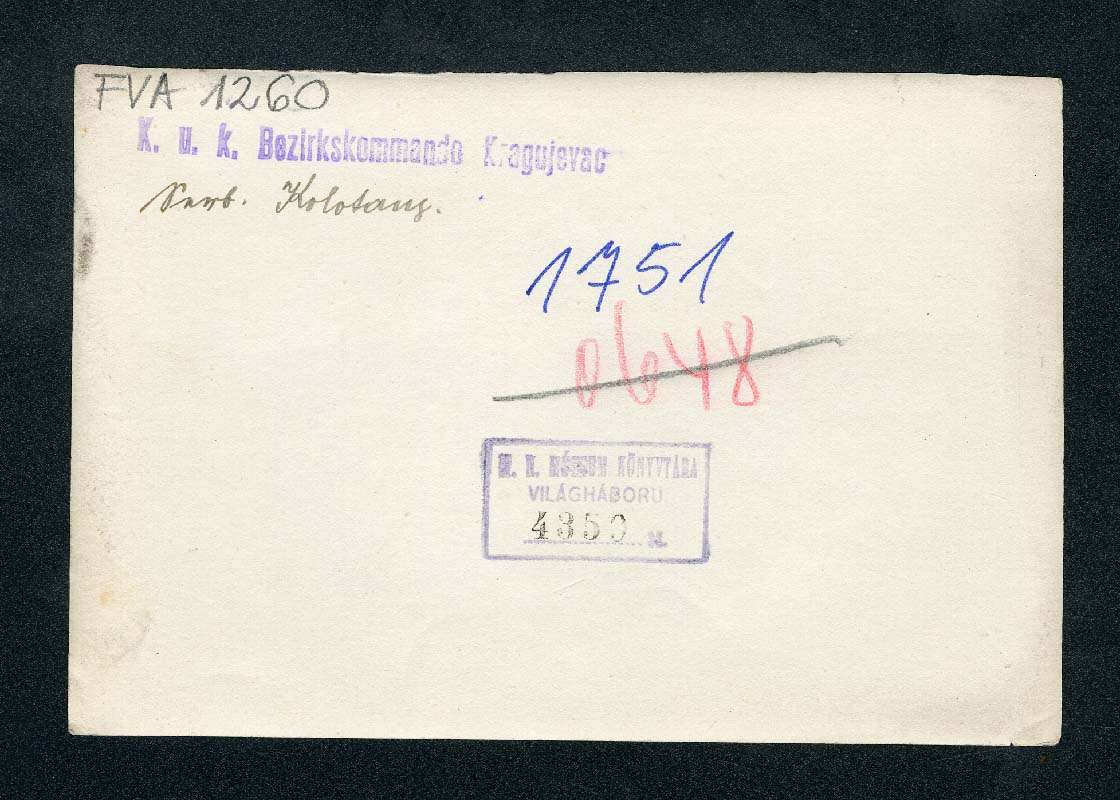 ua: FVA 1259.; M.N.Múzeum. Világháború: 4359. sz.; OSZK: 1751.