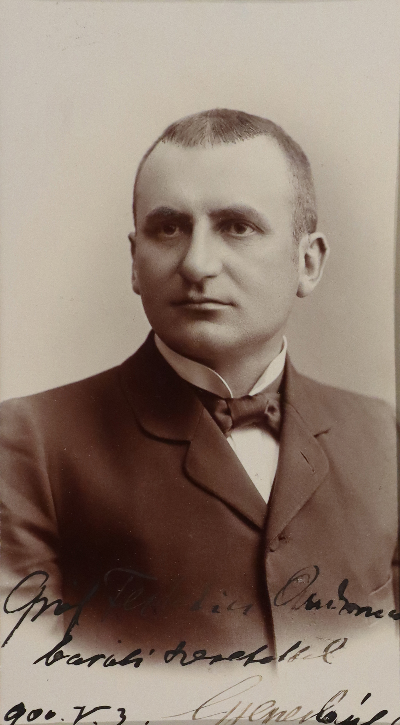 Kézírással: Gróf Festetics Andornak / baráti szeretettel / 900. V. 3. Gyenes László