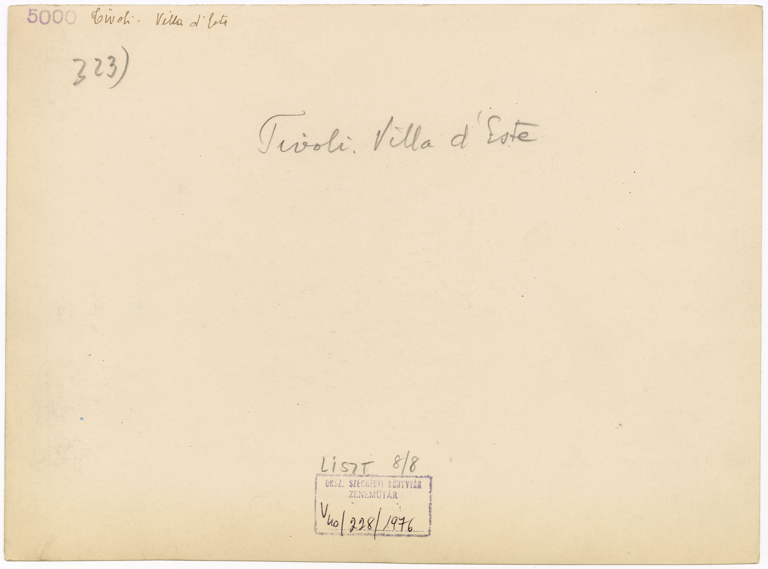 323) Tivoli Villa d'Este. 5000. Liszt 8/8. Bélyegző: Orsz. Széchényi Könyvtár Zeneműtár V 40/227/1976.
