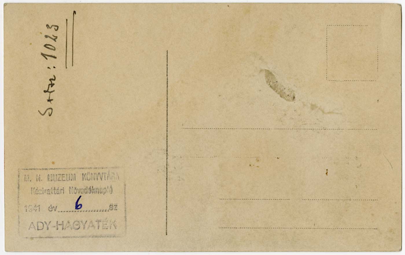 Sorsz: 1023. Bélyegző: M. N. Muzeum Könyvtára Kéziratt. Növedéknapló 1941. év 6. sz. Ady-hagyaték