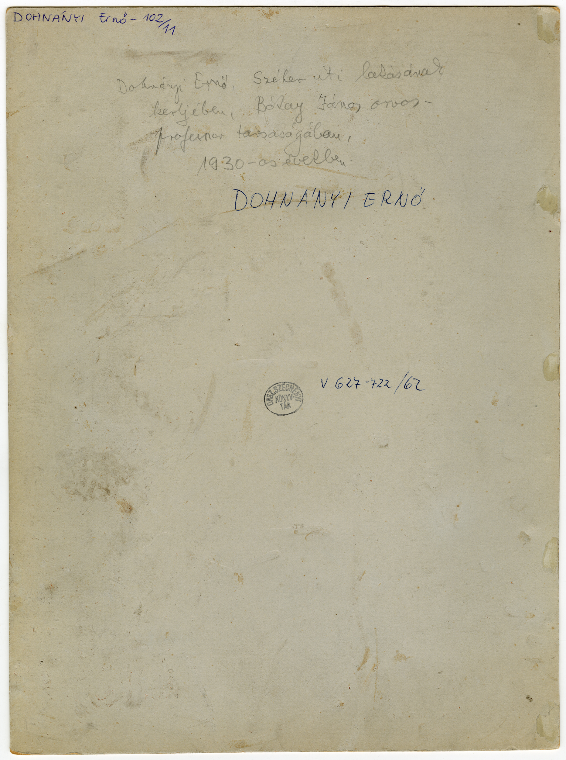 Dohnányi Ernő 102/11. Dohnányi Ernő, Széher úti lakásának kertjében, Bókay János orvosprofesszor társaságában, 1930-as években. V 627-722/62