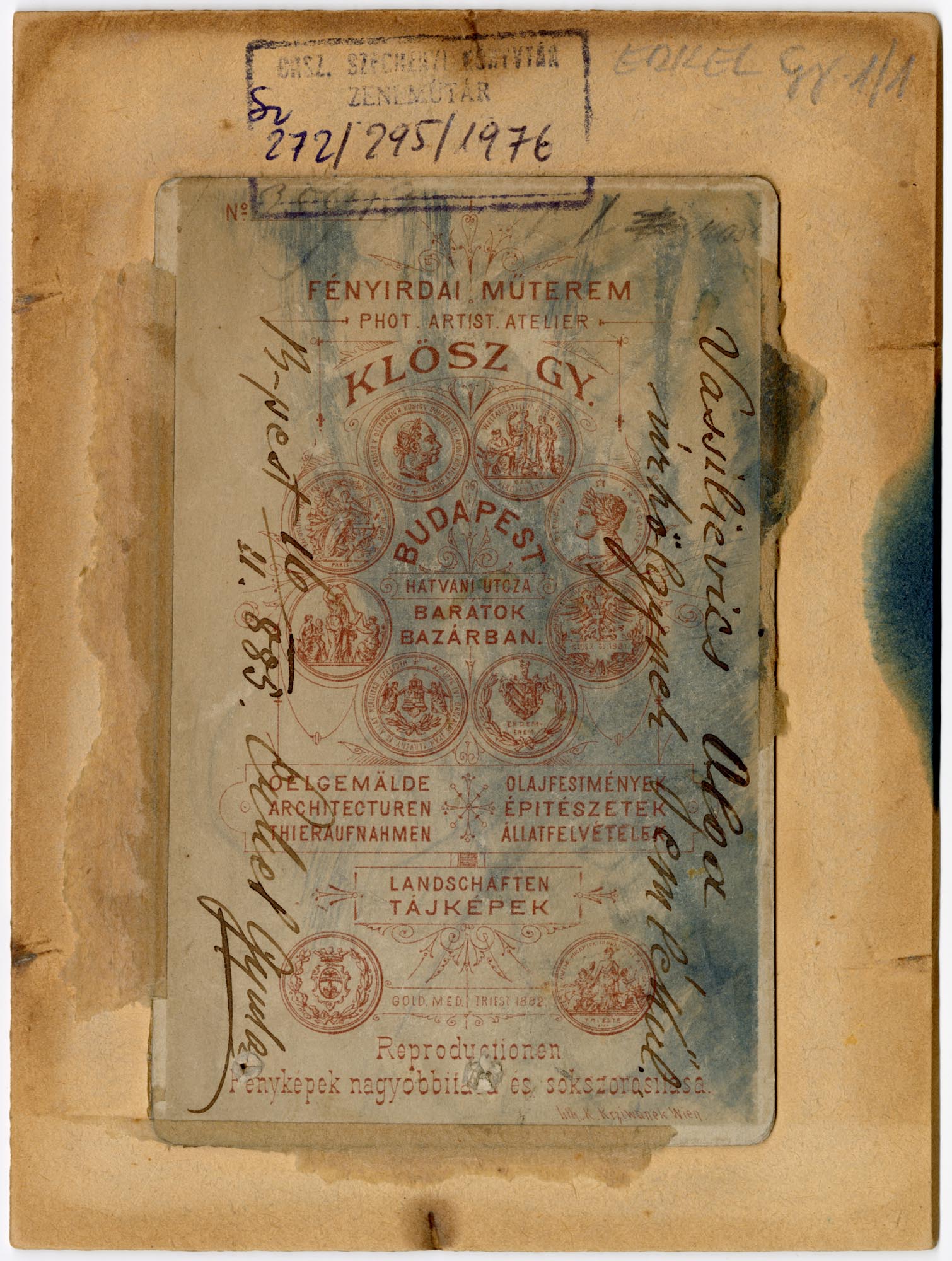 A fénykép a Zeneműtár gyűjteményében található. A kép mérete a másodlagos hordozó nélkül: 66x105 mm.