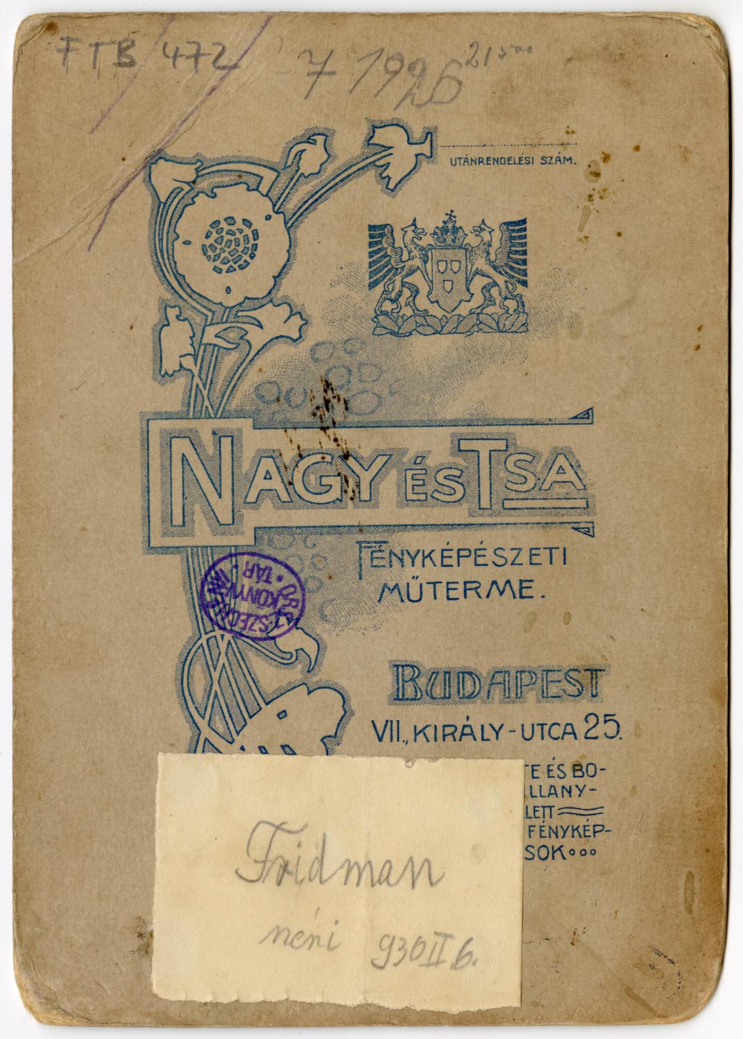 Nagy és Tsa fényképészeti műterme. Budapest VII. Király-utca 25. Fridman néni 936. II. 6.