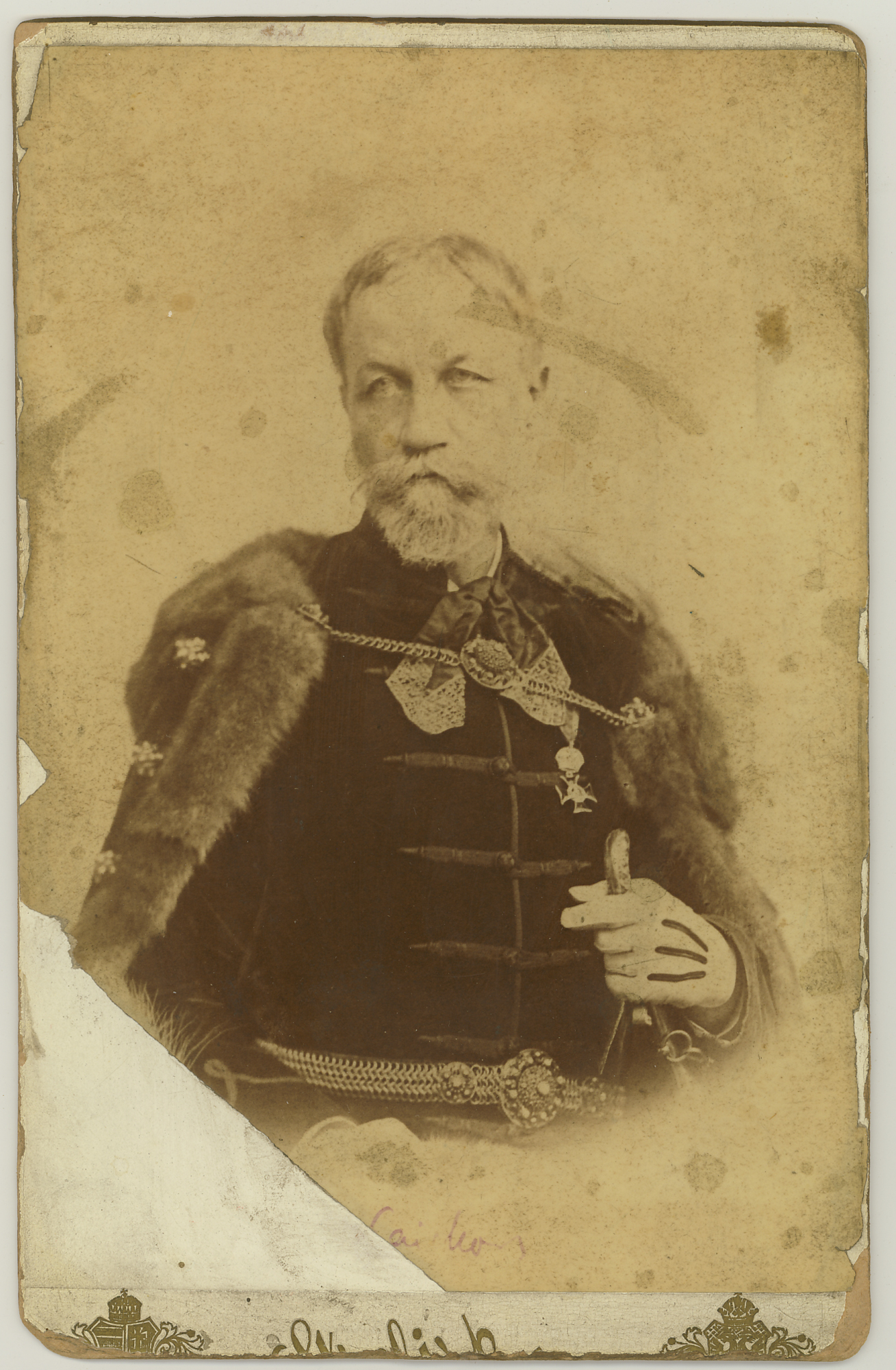 Jókai Mór díszmagyarban, a Szent István-rend kiskeresztjével