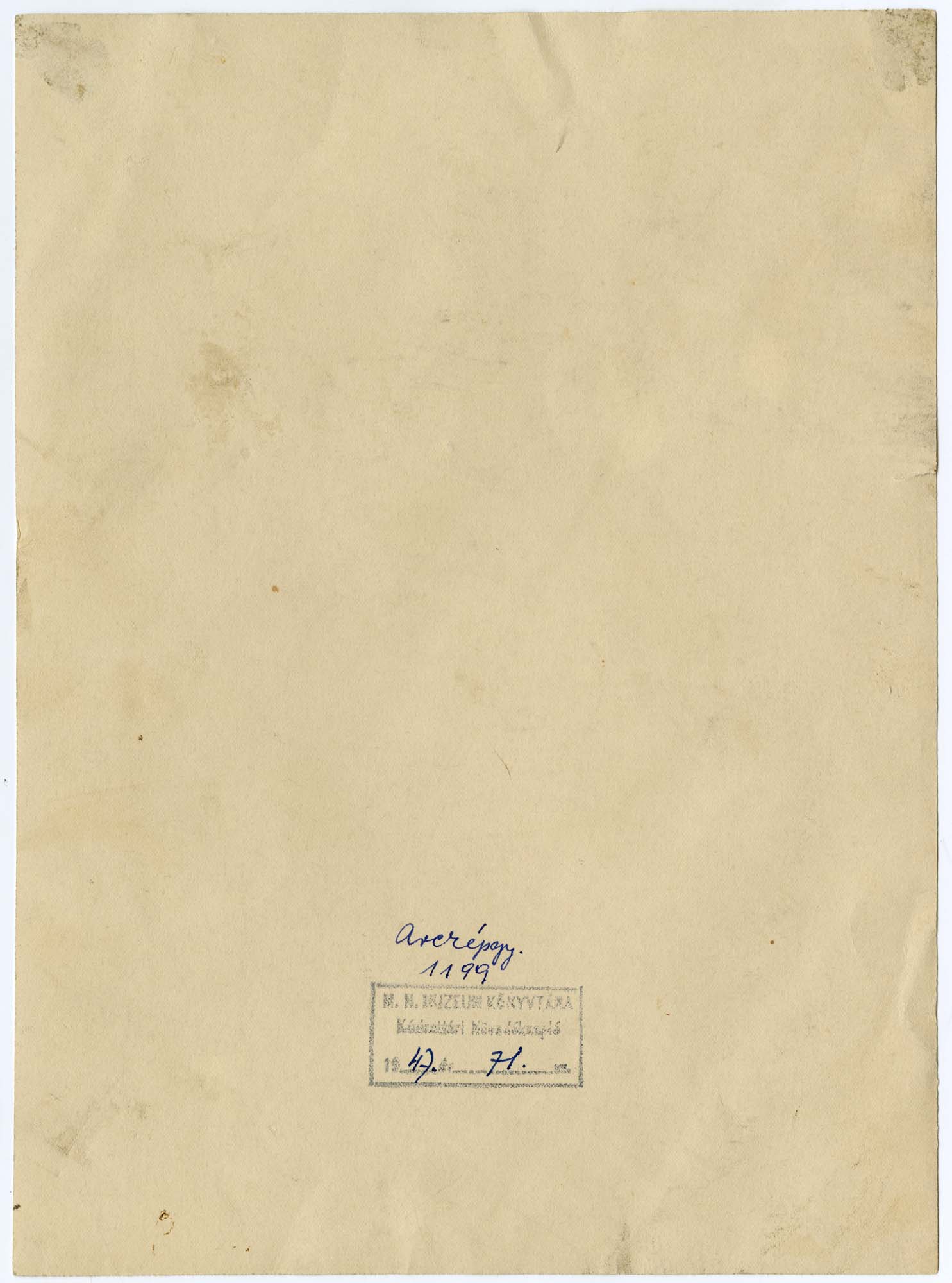 Arcképgy. 1199. Bélyegző: Orsz. Széchényi Könyvtár Kézirattári Növedéknapló 1947. év 71. sz.