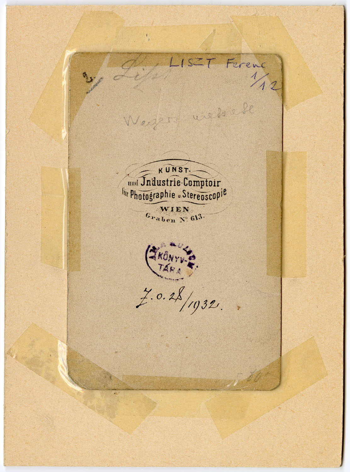 Nyomtatva: Kunst und Industrie-Comptoir für Photographie u. Stereoscopie Wien. Graben No. 613. Bélyegző: A M.N. Múzeum Könyvtára. Kézírással: Z.0.28/1932.