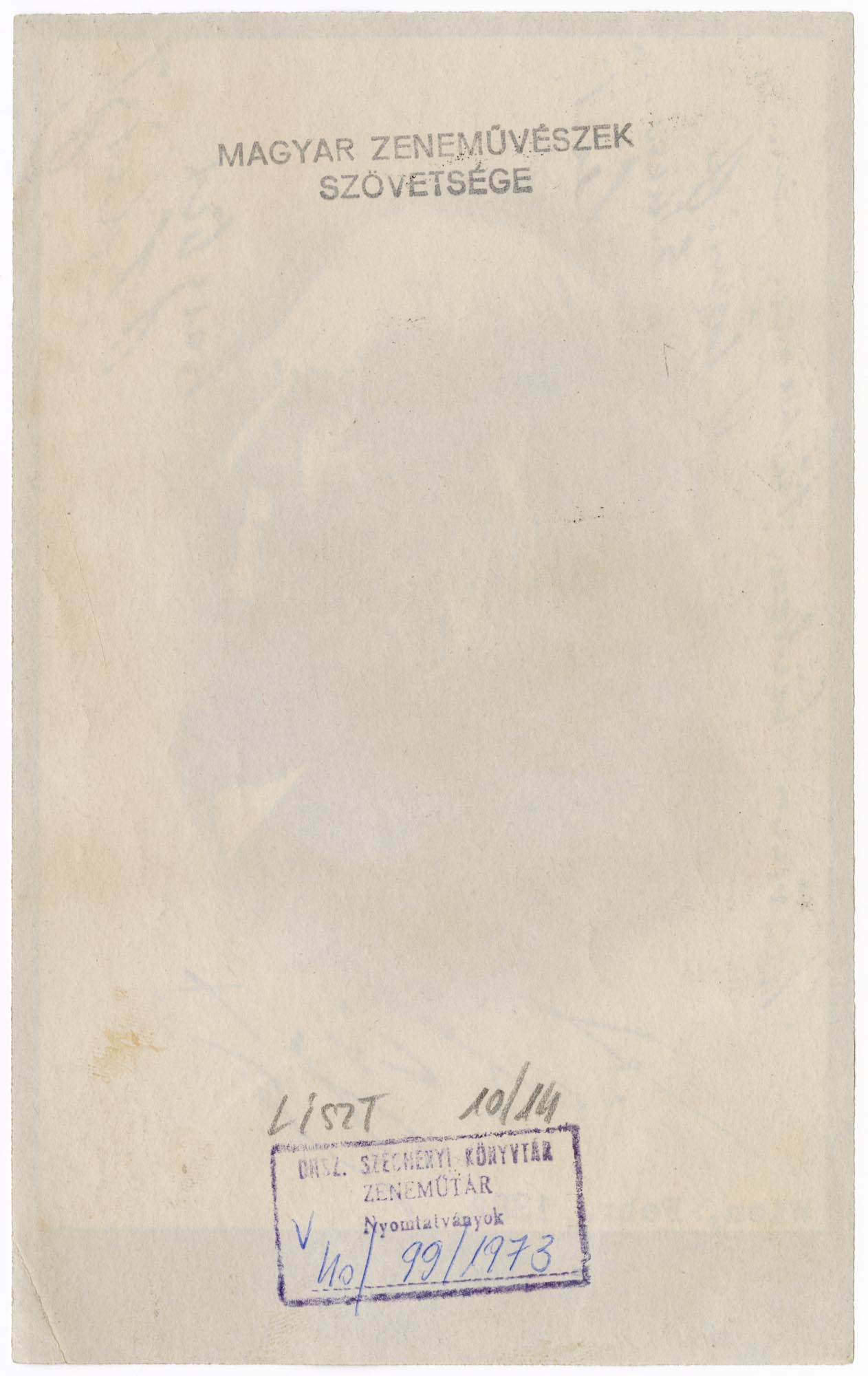 Liszt 10/13. Bélyegző: Orsz. Széchényi Könyvtár Zeneműtár V 40/98/1976.
