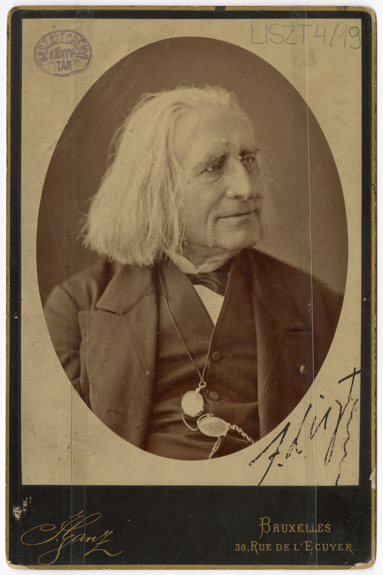 J. Ganz. Bruxelles 38, Rue de L'Ecuyer. Kézírással: F. Liszt.