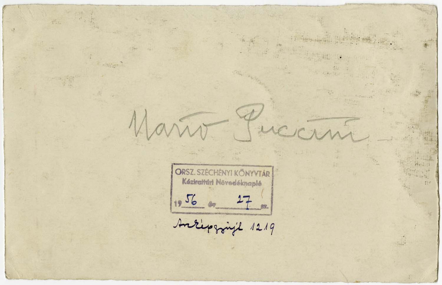Mario Puccini; Arcképgyűjt. 1219. Bélyegző: Orsz. Széchényi Könyvtár Kézirattári Növedéknapló 1956. év 27. sz.