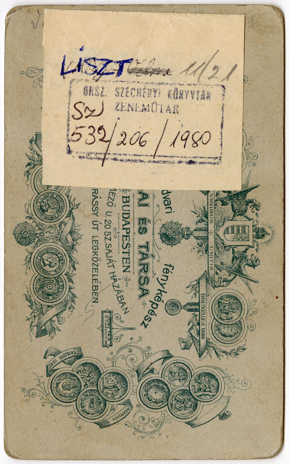 A fénykép a Zeneműtár gyűjteményében található. A kép mérete a másodlagos hordozó nélkül: 63x93 mm.